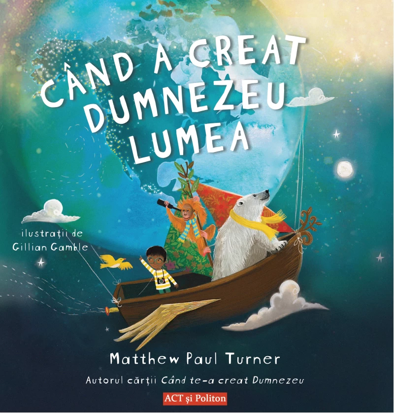 Când a creat Dumnezeu lumea / When God Made the World de Matthew Paul Turner cu ilustrații de Gillian Gamble este o poveste seducătoare în versuri pentru copiii preșcolari, din care aceștia vor afla povestea lumii. Cu alte cuvinte, cartea aceasta este, dragă părinte, pentru momentul acela în care copilul tău te va întreba cât se poate de grav: Mami (tati) cum a apărut lumea? Cum a apărut totul?