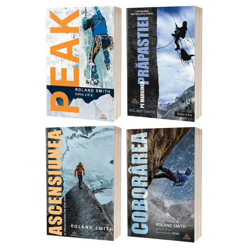 Prin „Coborârea” / „Descent”, Roland Smith ne oferă o încheiere spectaculoasă a captivantei serii de romane pentru adolescenții pasionați de aventură – „Peak”. După ce, în primul volum, tânărul alpinist, Peak Marcello, pornește să cucerească Everestul, după ce participă la o competiție internațională de escaladă în „Pe marginea prăpastiei”, și înfruntă riscurile uneia dintre cele mai periculoase țări din lume, Afganistan, în „Ascensiunea”, în acest ultim roman, el se confruntă cu cea mai dură încercare de până acum: o coborâre dramatică în inima Tibetului și o confruntare tensionată cu un inamic din trecut. Romanul poate fi citit și ca o carte de sine stătătoare, întrucât, înțelegerea acțiunii nu depinde de parcurgerea celorlalte cărți din serie.